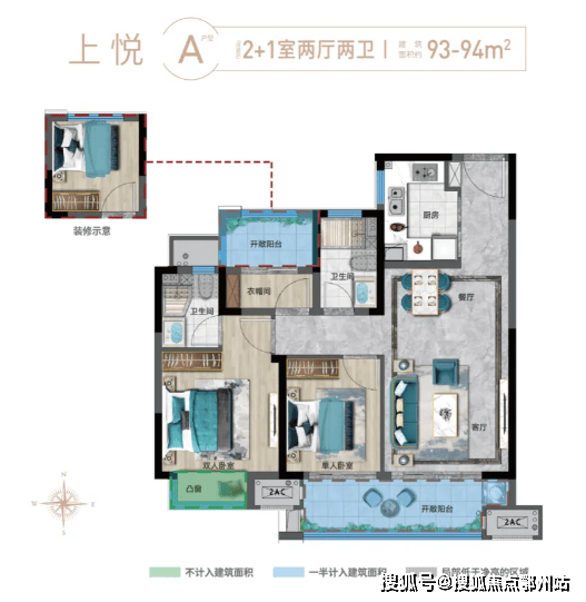 上悦 A户型 建面约93-94㎡