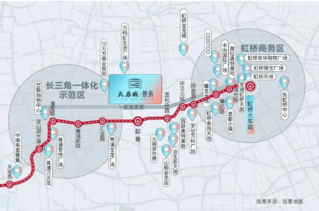 上海境内的上海示范区线串联虹桥国际枢纽、青浦新城、华为研发基地、长三角演艺中心、美的全球创新园区、西虹桥科创中心、安踏全球零售总部等多个产业高地,以后从大名城映辰出发,刷公交卡就可以去沿线的名企上班了。