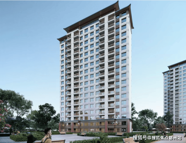 建筑单体: 外立面风格为现代中式风格,外墙采用石材。