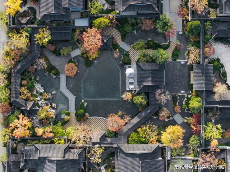 整个社区的师承苏州园林五进制序列,打造出“迎宾院-迎、主峰院-沁、水溪巷-隐、中轴央景-赏、组团园林-雅”的游园路线。