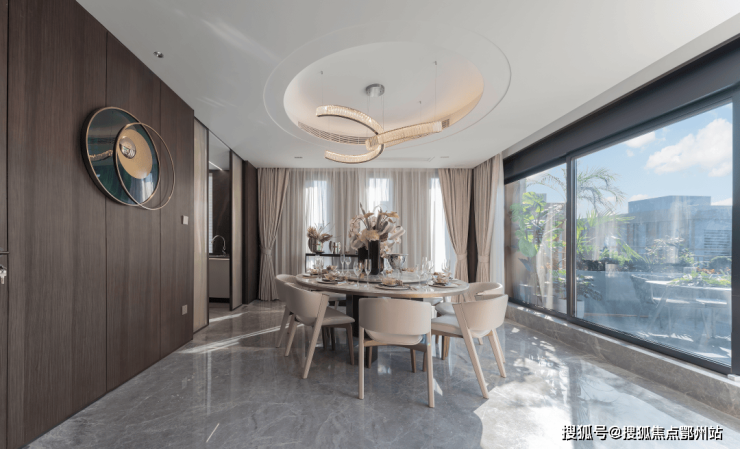 客餐厅一体化 ,分而不离,既保证了空间开敞又布局合理,实现1+1大于2的效果。