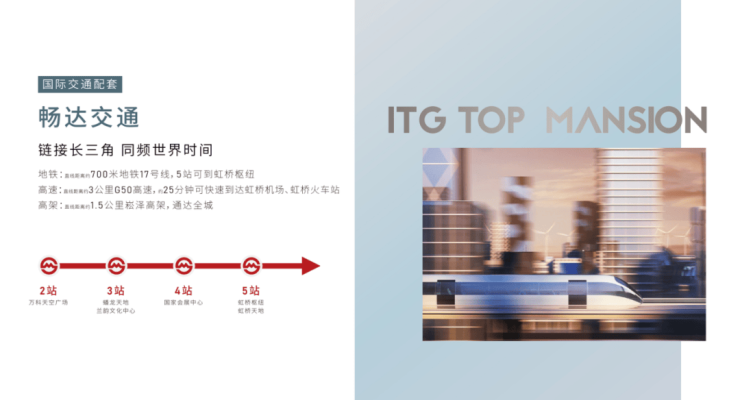 大虹桥: 国际开放枢纽、国家战略重点发展区域,是面向全球,辐射长三角的经济巨擎。国贸虹桥璟上占位虹桥核心区域,17号线地铁5站即可到达大虹桥核心功能承载区,将成为精英人士置业优选。