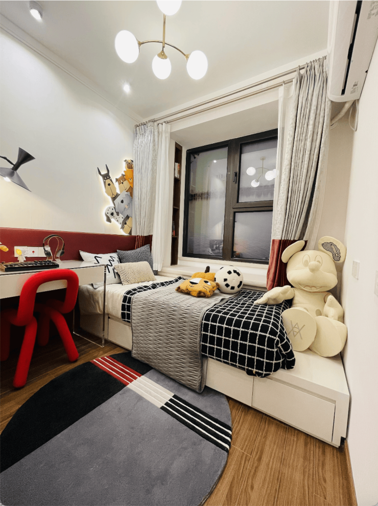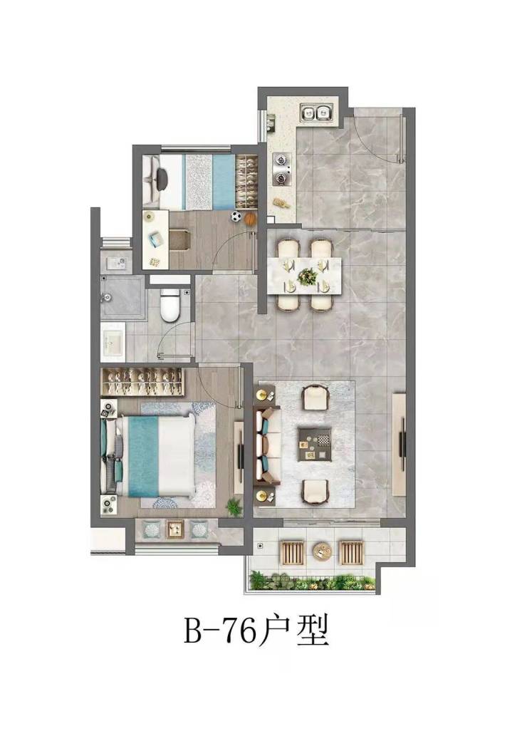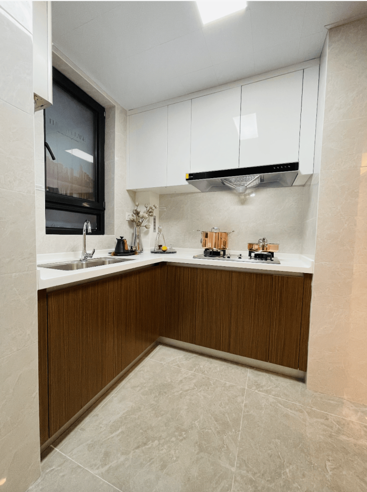 客餐厨一体化设计,外连景观阳台,保证室内充足的采光与通风,无隔断的设计,增加了空间使用率,也满足了家庭成员之间更多的互动与交流需求。