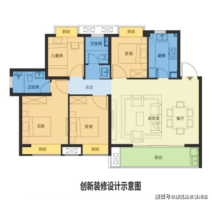 如果想要纯正的私密的4房,可参考上图创新装修设计示意图。