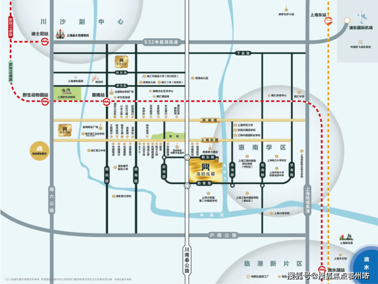 交通配套: 项目地块距离地铁16号线惠南站直线约1.7公里,16号线沿线可换乘11、13、2、7、18号线通往各市区方向。另外,人民东路上还有多条公交线路可以选择,自驾可上外环高速、上海绕城高速也相对有些距离。