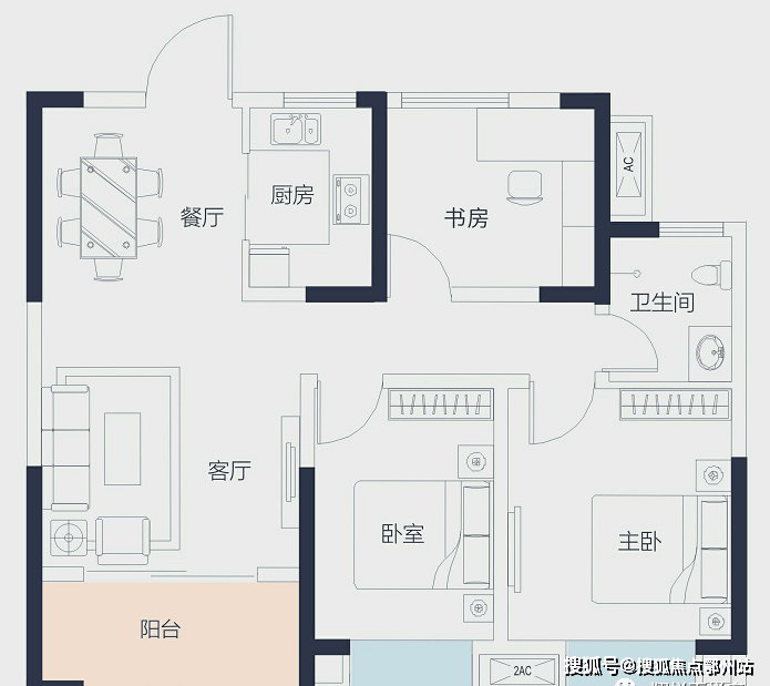 南向两卧飘窗设计、北向全明书房
