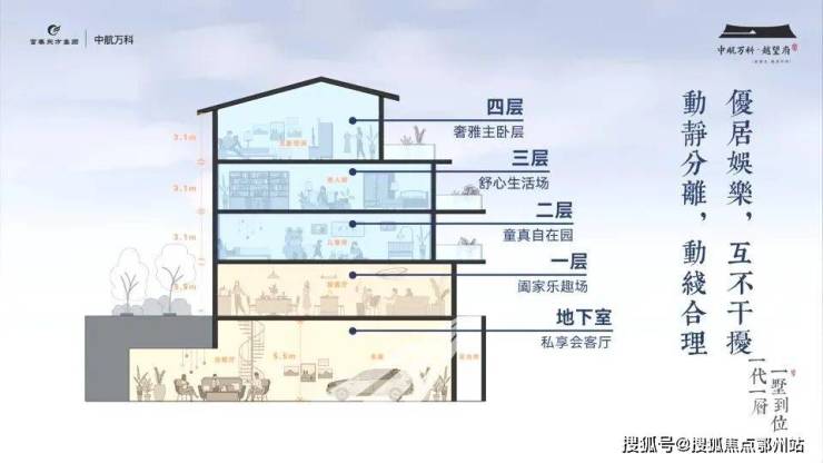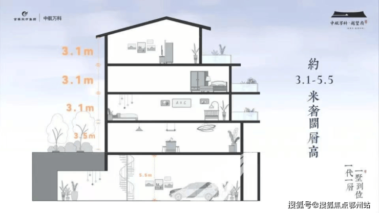 深入中航万科·越望府,可洞悉其隐于内在的人居蕴意。283㎡阔境别墅的户型设计皆遵循 大尺度、大面宽的理念, 地上四层均设计了约3.1-3.5米挑高, 层层拥有超过10米大面宽的豪华套房设计,为业主们营造更通透明亮的居住体验,给人一种宽敞奢华的大气之感。