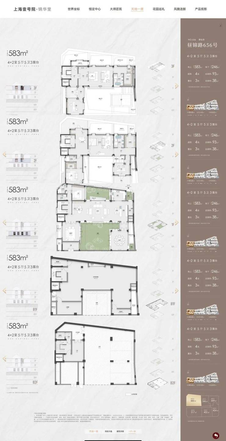 4. 上海风貌层高最高的产品,很多户型层高:地下6.1米,一层3.9米,二层3.6米,三层3.6米