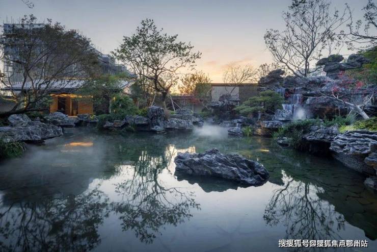 以水、山、石、植相结合打造而成,建筑与水池相互呼应,虚实相间,儒雅气质舒散开来,自然禅意之感油然而生。