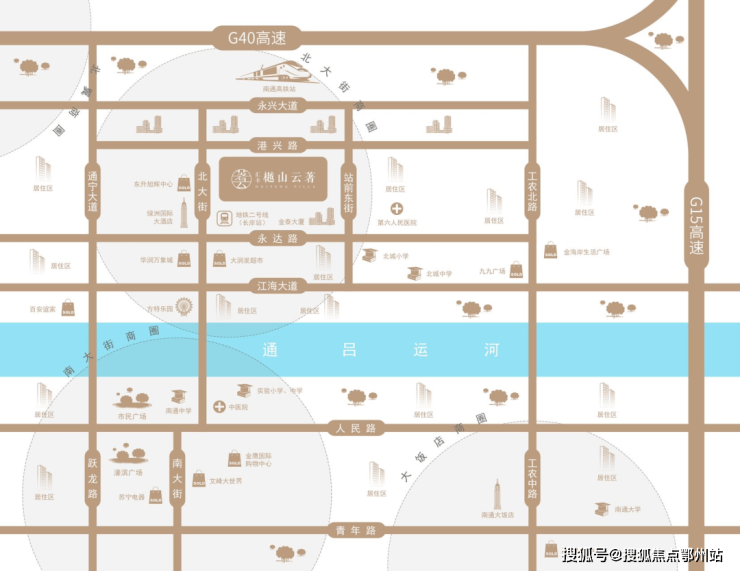 汇丰·樾山云著位于 北大街核芯位置,北邻南通站,往南江海大道高架,同时地铁2号线长岸站(在建)就在项目旁,交通出行非常便捷。