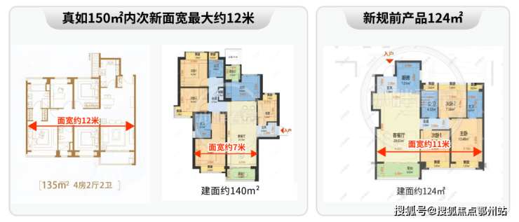 对比新规前产品 :新规前120㎡段户型,南向面宽普遍11米上下,环宇玖章面宽优势同样显著。