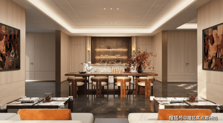 玻璃客厅,打造“无界屏”美学会所,推拉玻璃自由拾光,实现空间场景瞬时转换。270°会所空间星空吧台、云端健身馆、茶道禅庭等,多元生活场景。
