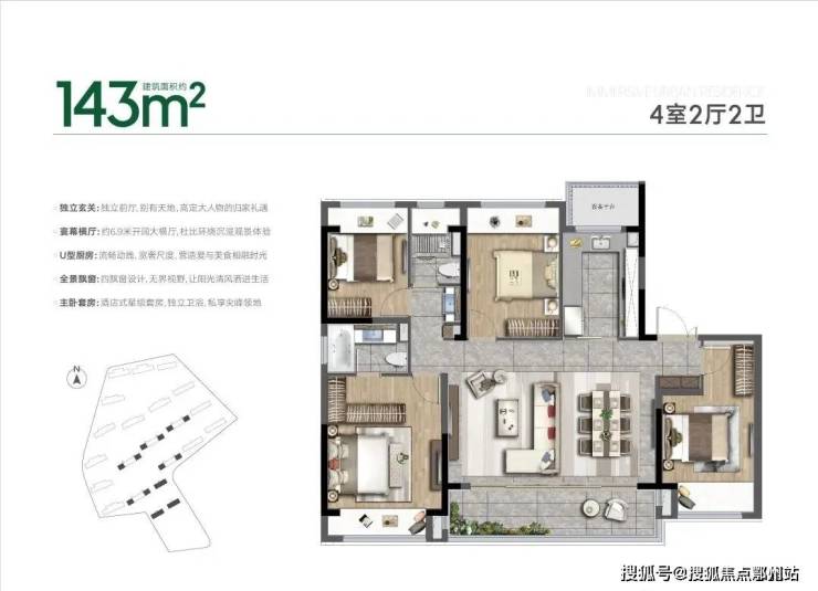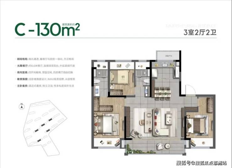 ①中建智地,实力央企中国建筑旗下100%控股;②开放即开业的四大社区商业配套;③超万平CITY TREE微度假景观;④大横厅、全飘窗的高端改善户型