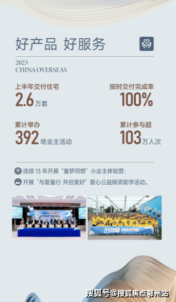 中海品牌—安全保障力:“三道红线”政策出台以来,中海地产始终稳居“绿档”榜,信用评级行业最高。2023年上半年交付住宅2.6万套,按时交付完成率100%。
