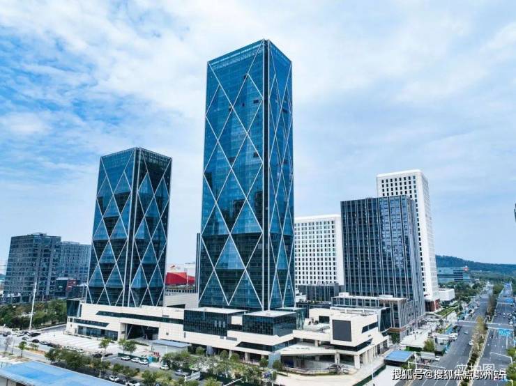 飘逸起翘的屋顶飞檐,“轻闲霁金”的建筑风格,造就光谷核心区独特的宋韵风景线。建筑立面采用大面积落地玻璃与金色钩边的宋韵铝板构件,将采光功能性与景观视野开拓性极大提升。