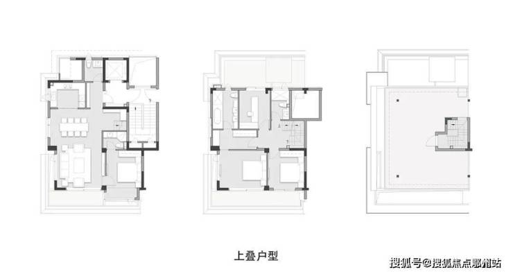 3楼到4楼为中叠,建面约为160、170㎡;5-6层加顶层露台为上叠,建面约155㎡、165㎡