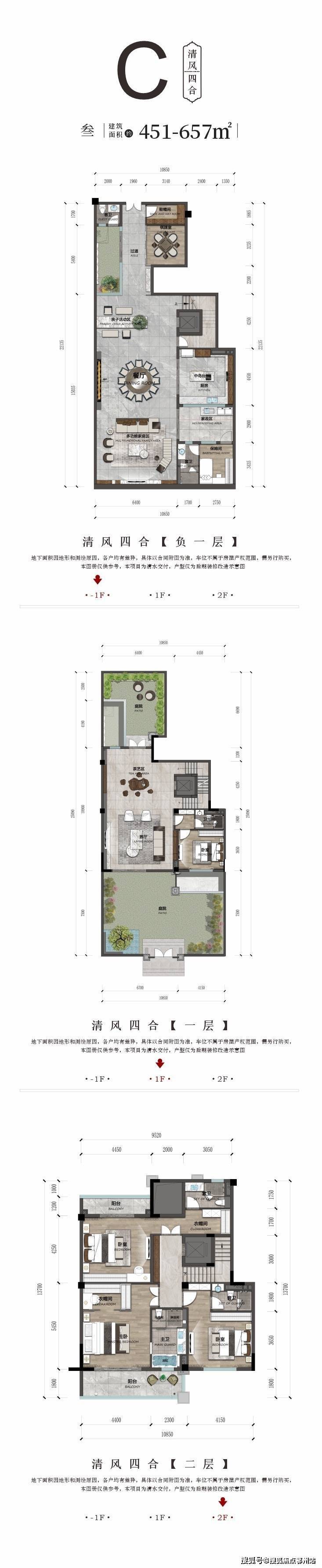 下叠户型建面约366㎡—485㎡,最大花园建面约300㎡,南面入户