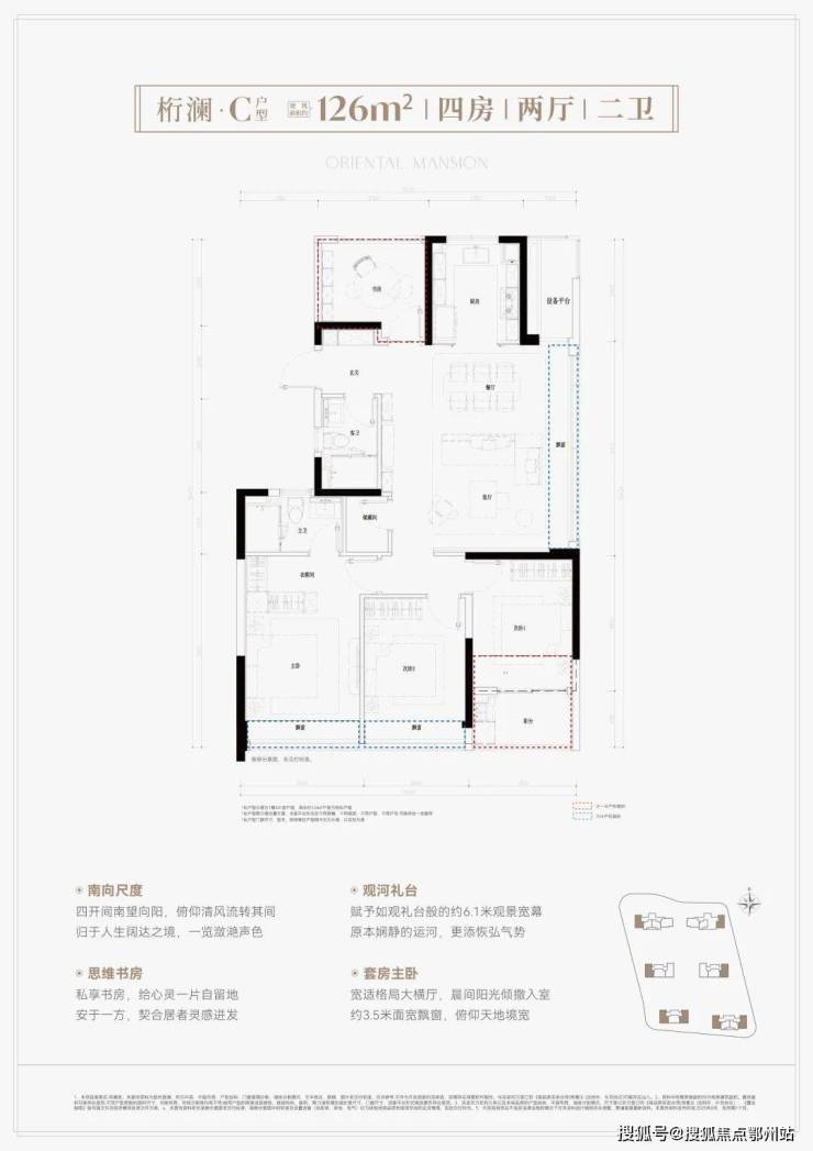 建面约126方4房2卫,270°稀缺边套四房