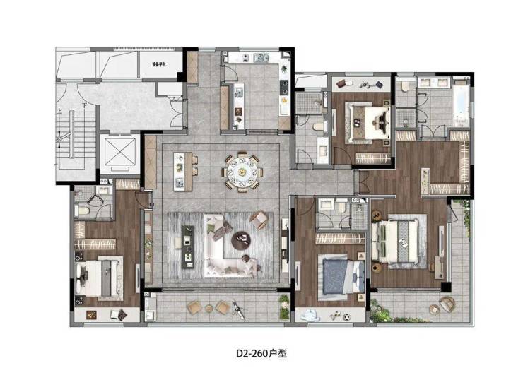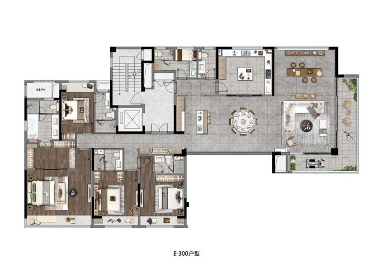 除300㎡产品一层一户外,其他产品都是 纯粹的一梯一户配置,彰显私密与专属。