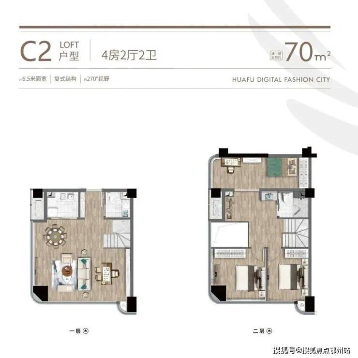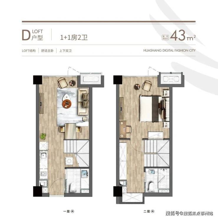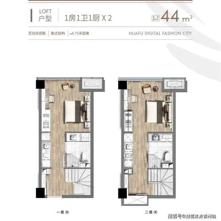 主力面积 约43-70㎡ , 约4.75米 层高的LOFT产品,基本突破了传统思维,设计上大开间化,采光通透性好,呈现出更好的舒适性和空间的可塑性。