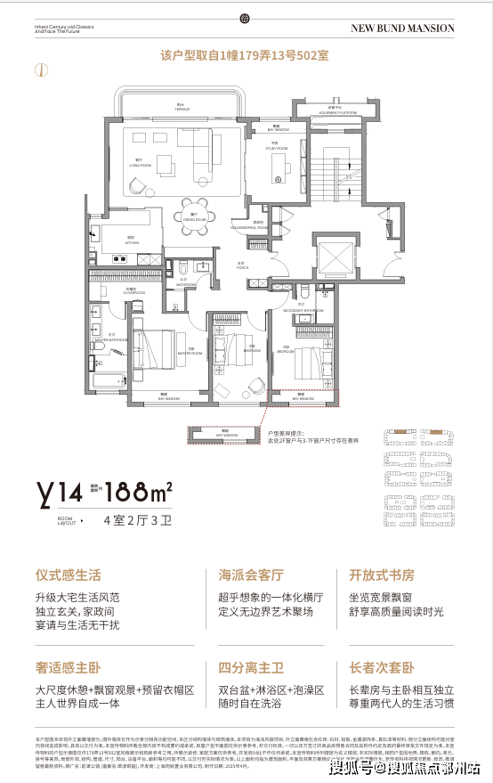 极致奢华: 针对海派精英生活秩序再设计,双向私密电梯入户、家政处理间、无界会客厅,媲美大平层的尺度感,见证豪宅待客礼仪升华。