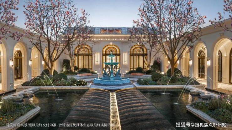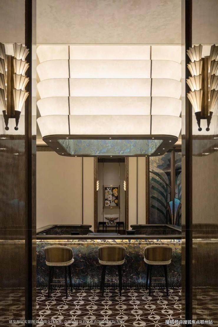 以玉兰门庭—迎归大堂—莳花荟为主轴,敬献步履生辉的归家艺旅:玉兰门庭如繁花盛绽,尊华瑞鳞水景聚运生财,双尊铜狮镇守家宅;迎归大堂流转光影艺韵,百羽栖澜艺术雕塑、芦海宸韵非遗绣作流淌摩登气韵;莳花荟中央会客厅移步异景,献映会客、休闲等雅会。