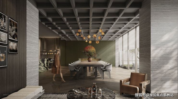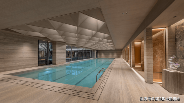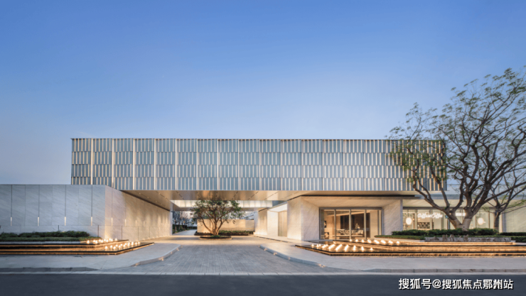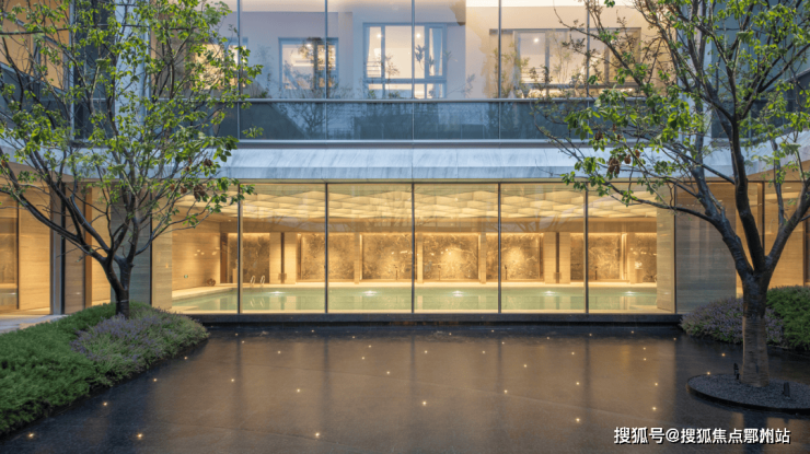 同时,部分采用 天青色釉面陶板,超扁平形制,同样搭配 大面幅落地Low-e三玻两腔玻璃,让建筑像是妙手剪裁的艺术品般行云流水,更大程度的为业主带来宽绰视野,体验摩登生活。