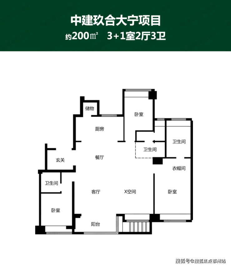 户型图如下:(过程稿仅供参考, 以开发商官宣为准)