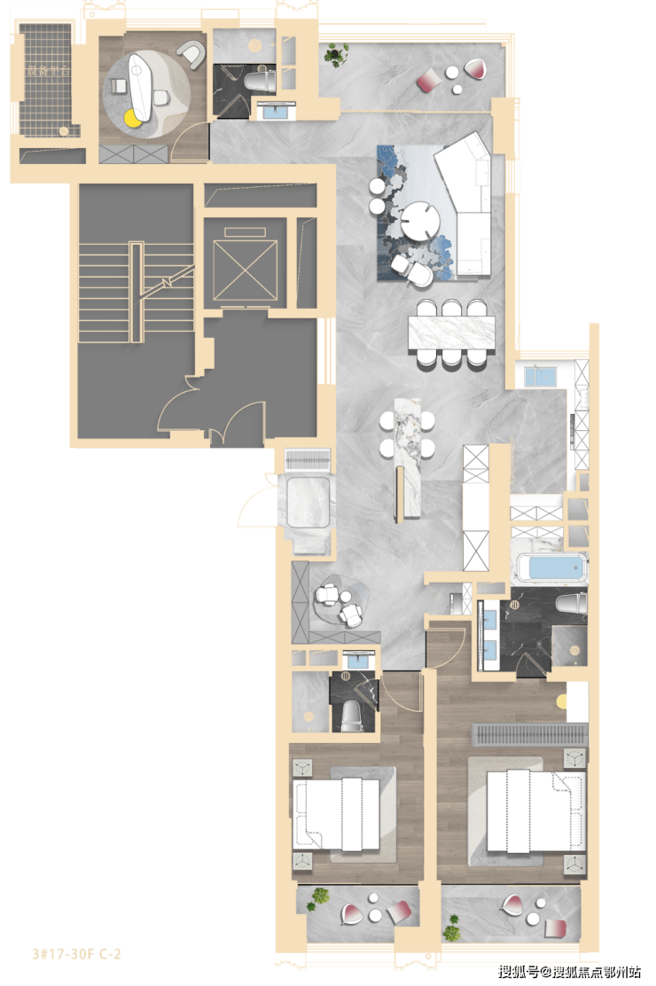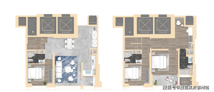 建面约193、237㎡为类一梯一户设计,拥独立门厅;建面约303㎡ 标配2梯1户、私享梯厅,纯粹的大平层圈层!