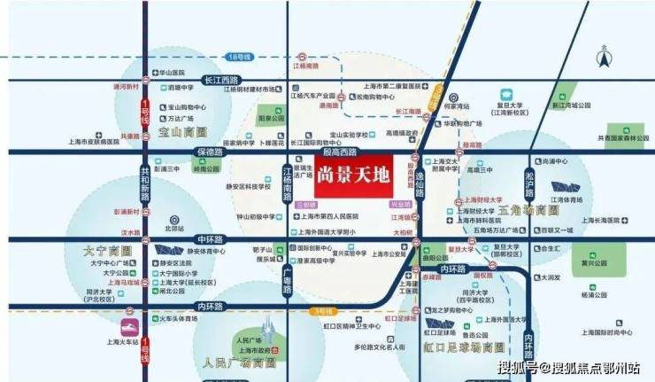 项目地址位于上海宝山区殷高西路518号。隶属高境板块,地处宝山、杨浦、静安、虹口四区交界的位置。配套成熟、生活便利、公共交通四通八达,地理位置优越。项目对面自带大型商业综合体长江国际购物中心,附近还有像三邻桥、新业坊这样的新兴商圈,完全可以满足业主平日吃喝玩乐一站式的休闲娱乐体验感与基本的日常生活所需。