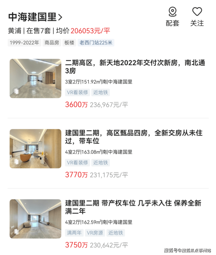 距离绿城黄浦ONE最近的次新标杆二手房小区,150-200m²户型挂牌均价 20-23万/m²!