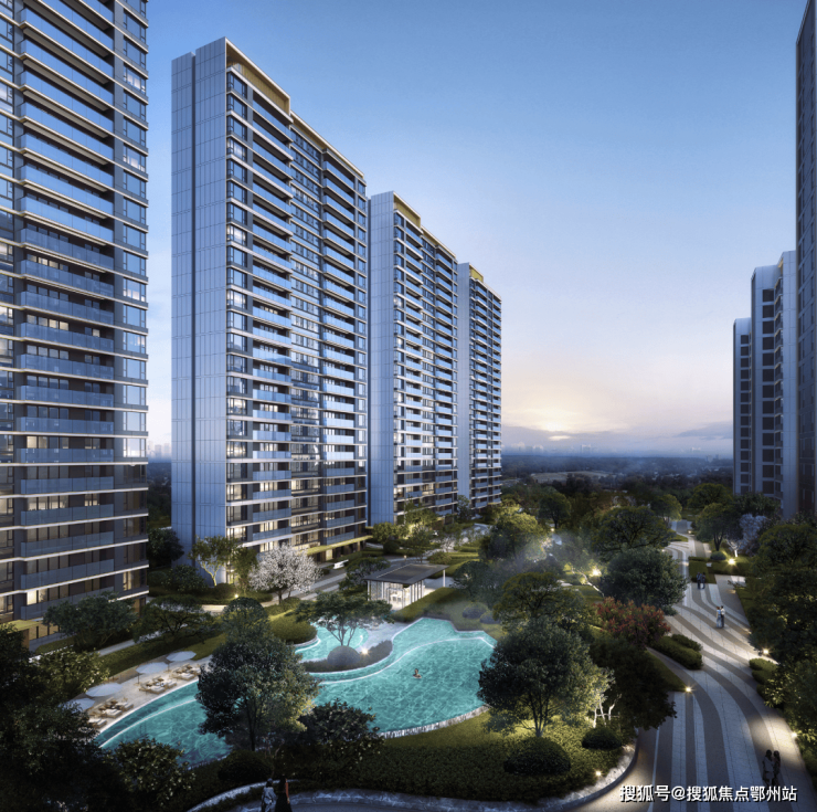 这次的仁恒滨湖湾,采用了经典的围合式布局,沿袭了仁恒标志性的国际化立面,秉承着“去风格化”的设计标准,建筑线条简约大气,低调内敛。