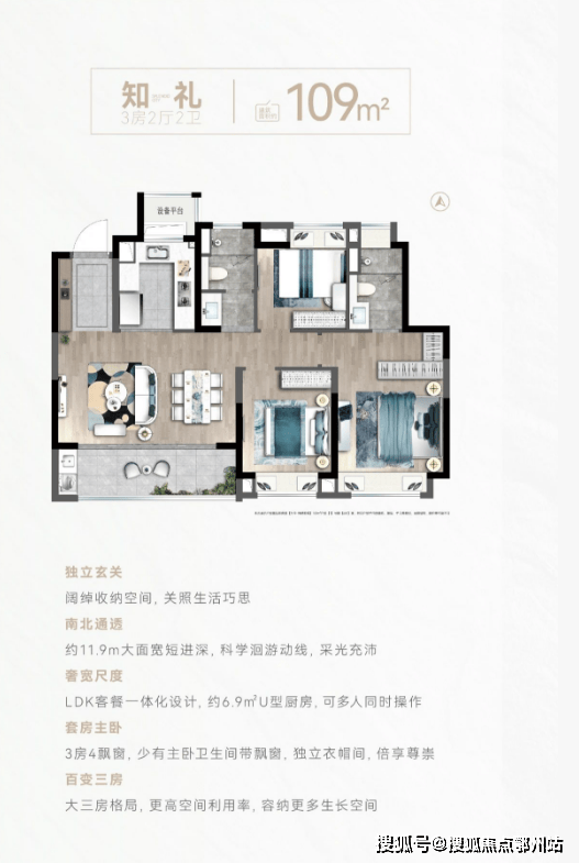 主力户型:主要有 89㎡-109㎡的动静分离、三开间朝南、U 型厨房的三居户型,还有 130㎡阔景四房户型27。