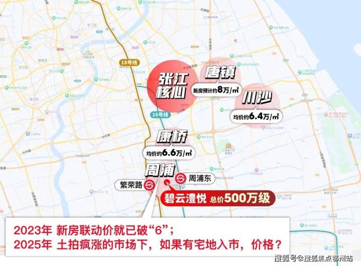 交通方面: 距离16号线周浦东站约1.8公里、18号线繁荣路站约2.6公里,算不上名副其实的地铁盘,可借助其他短驳交通工具,通勤到张江、前滩、陆家嘴、人民广场等核心区域还是比较方便的。