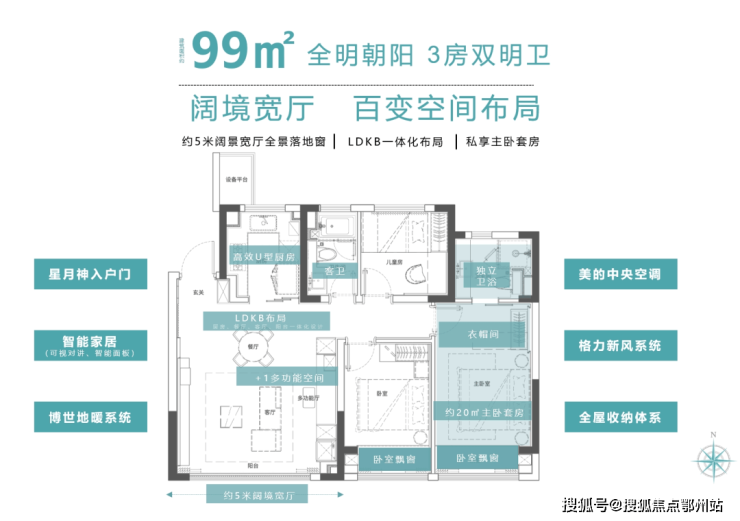 LDKB一体化设计,强化家庭互动可能,让家的温度在开阔布局中自由流动。 约25㎡星级主卧套房配备明卫与衣帽间,在私密中尽显尊崇。