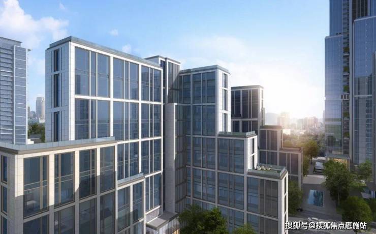 与市场上同类型产品相比, 亚奥城南区的挑高行馆与滨水平层所构成的围合式组团,充分兼顾了开放与私密的特性。 其错落有致的建筑形态,