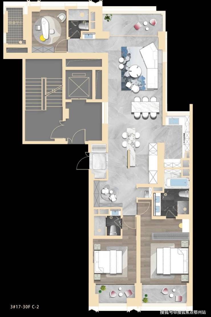 4#楼王总高16层,均为大户型产品,圈层更纯净!主力建面约193-302㎡,户型图如下: