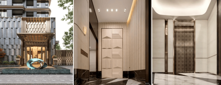 社区 复刻和平饭店酒店式门庭,引入酒店式双线归家仪序,五进入户礼序+四重车仪之道,重现海派隐奢归家之路。