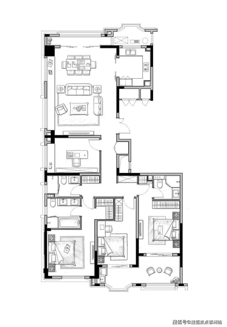 A户型 建面约192㎡ 四房二厅三卫