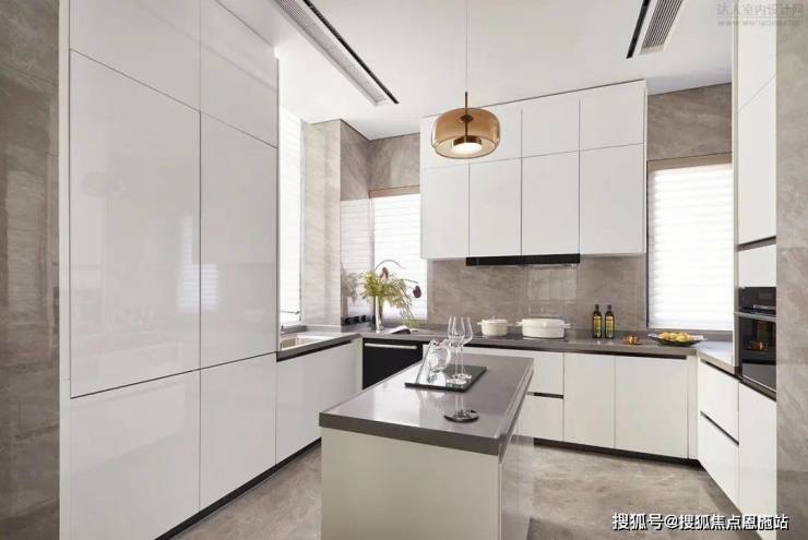 厨房中岛的设置,更好地满足各种生活需求。开阔的空间布局配合着自然光演绎宁静而优雅的格调,趋于简约的室内更加注重流动性,风与光在室内自由穿梭,形成家的旋律。