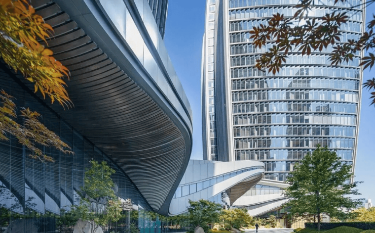 由Aedas设计的观云·钱塘城,位于杭州钱江世纪城奥体博览城区域,占地4.4万方,总建筑面积约33万方,其中地上建筑面积22万方,项目地上最高28层,地下3层,共规划5幢塔楼,由写字楼、大平层公馆和商业三大业态组成。