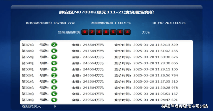 3月28日,上海2025年第三批次土拍,大华集团以总价24.85亿竞得静安大宁111-21地块,溢价率32.31%,折合楼板价92659元/㎡。装修标准不小于5000元/㎡。