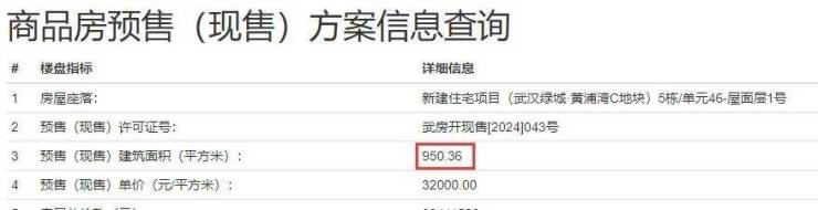 顶复也是32000元/平的备案价,面积950平