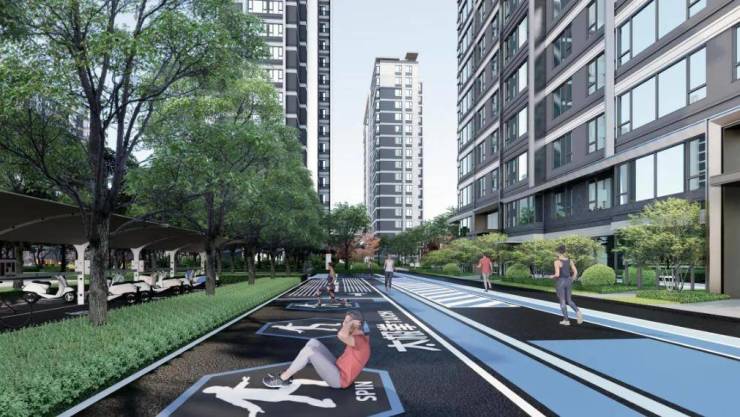 比如社区 全长500m运动环道 ,结合青老年锻炼空间与跑步环道,打造活力无限的户外活动空间。
