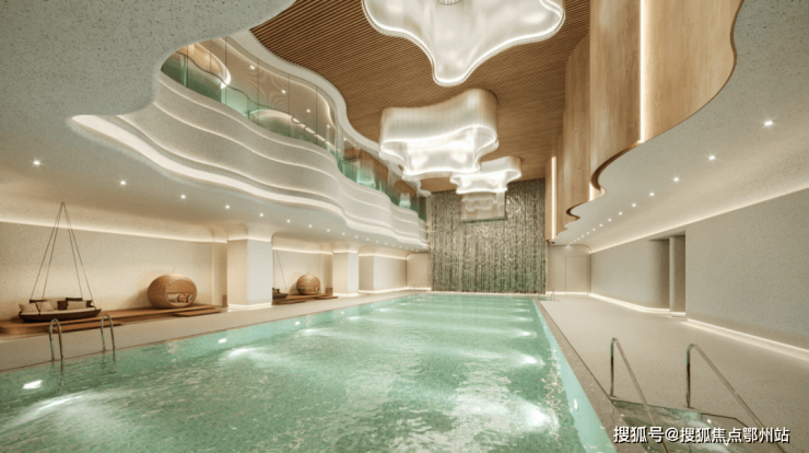 两层挑高的泳池 ,目及之内满屏的“弧形”元素,还能从天顶上引入自然光,让你感受到在别有洞天之地游泳的体验。