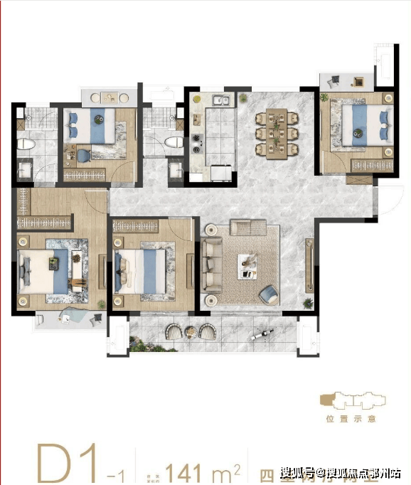 二期毛坯高层:主力户型有 89㎡的两居室,全明设计,动静分区;99-120㎡的三居室,南北通透,双卫布局;141㎡的四居室,大横厅,主卧套房。