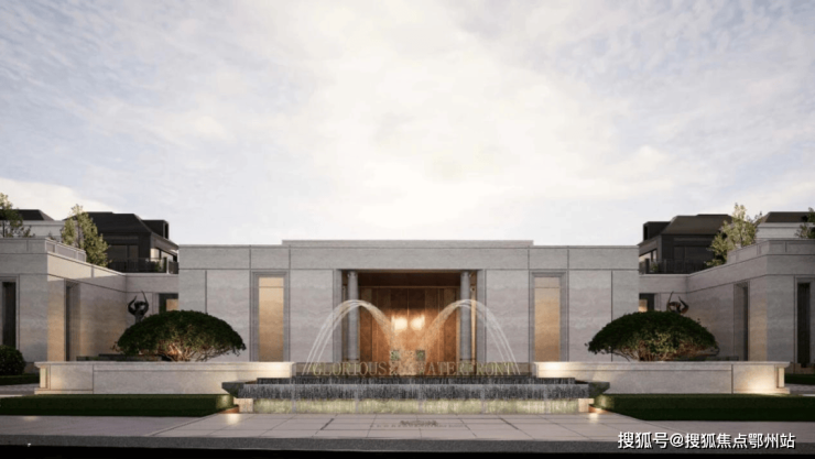 社区南门: 约 36米奢阔尺度,传承自凡尔赛宫的三泉林,对称仪制带来尊崇感,同时确保归家时人车分流,在保证安全的前提下,更带来从城市回归家园的心境转换。