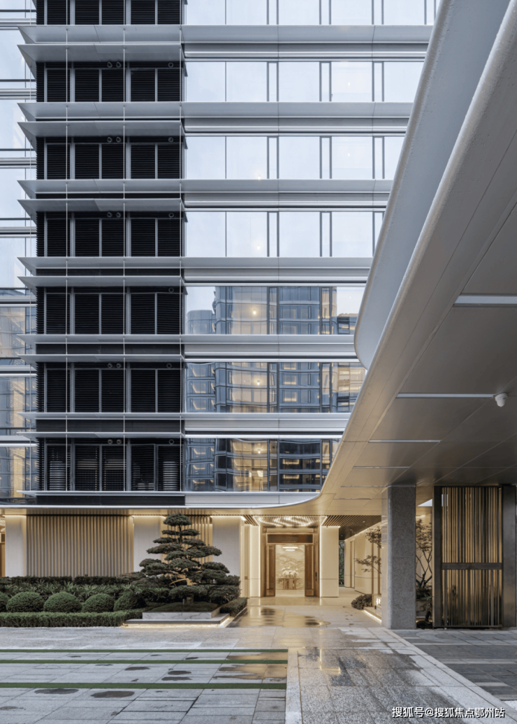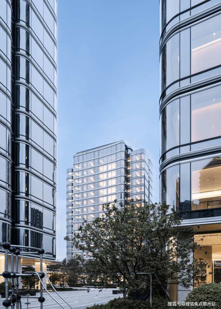 游艇”造型辅以流动的水波立面,舒展的横向线条, 圆润的转角处理,彰显钱江新城和江河汇的华贵气质,让建筑,仿佛原本就应该出现在此。