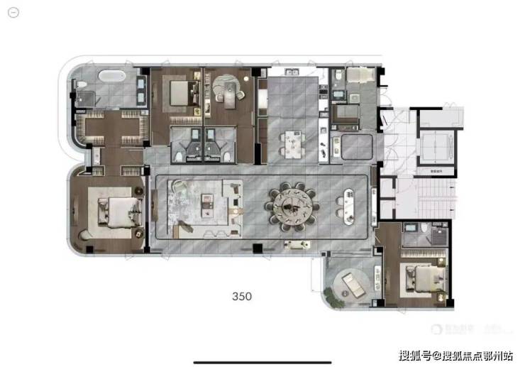 精研建面 约310-530㎡平层家业大宅,围合布局,隔绝繁华之芯的喧嚣,闹中取静,江河的澎湃不绝于耳,楼座朝向,为开拓视野向东约27。亲景角度,让阳光清风延景入室。