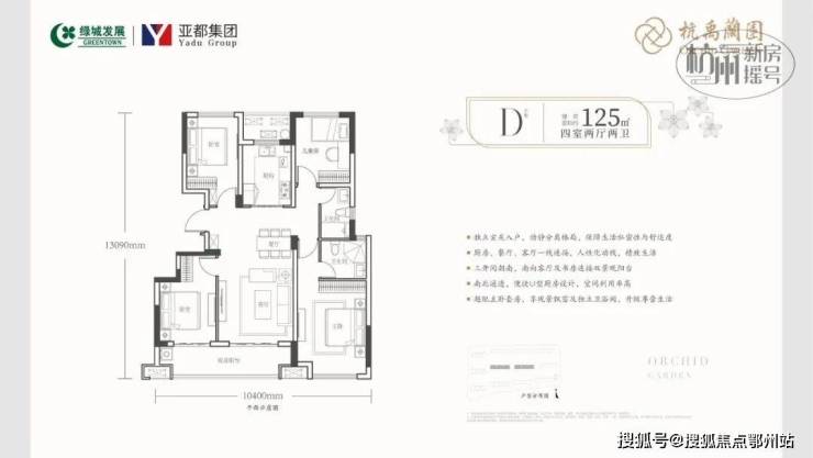 建筑面积约99-101㎡是舒适性三房户型,建筑面积约114-125㎡则为一步到位改善四房。